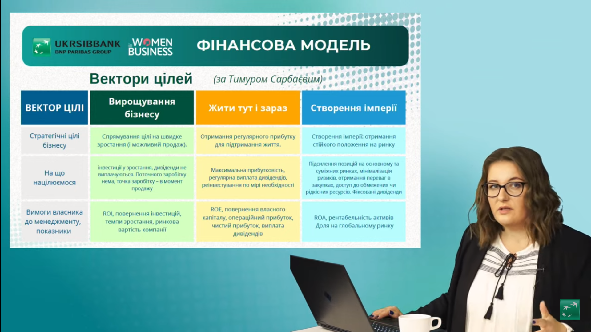 Доцент кафедри маркетингу та торговельного підприємництва УІПА Польова Тетяна Володимирівна відвідала тематичний захід від UKRSIBBANK для розвитку жіночого підприємництва в рамках програми Women in Business. Онлайн семінар стосувався теми “Фінанси і аналітика для росту бізнесу“, спікерка Марія Домчак, власниця Fast Line Group, експертка з фінансів та бізнес-аналітик, співвласниця групи компаній tm.ksenija, фахівчиня з фінансів та ментор міжнародної бізнес-спільноти board.business. Усіх присутніх було ознайомлено з основними фінансовими звітами та способами їх аналізу; фінансовою моделлю бізнесу, як інструментом для ефективної роботи і росту компанії; методиками визначення ефективні KPI для топ-менеджерів, щоб збільшити прибуток компанії.