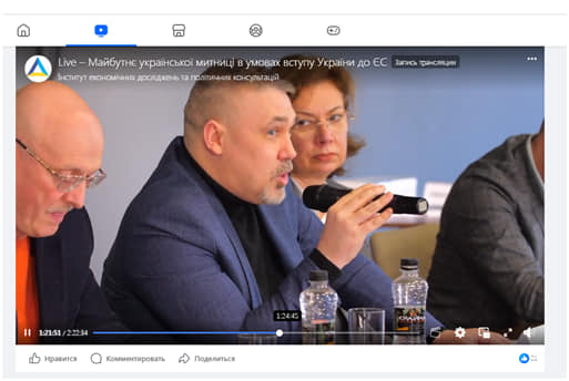 Представники кафедра маркетингу та торговельного підприємництва УІПА брали участь у Круглому столі на тему: «Українська митниця в умовах вступу України до Європейського союзу», який організований Інститутом економічних досліджень та політичних консультацій (ІЕД) в рамках проєкту «Підтримка Громадської ініціативи «За чесну та прозору митницю», за фінансової підтримки МФ «Відродження»Live – Майбутнє української митниці в умовах вступу України до ЄС.