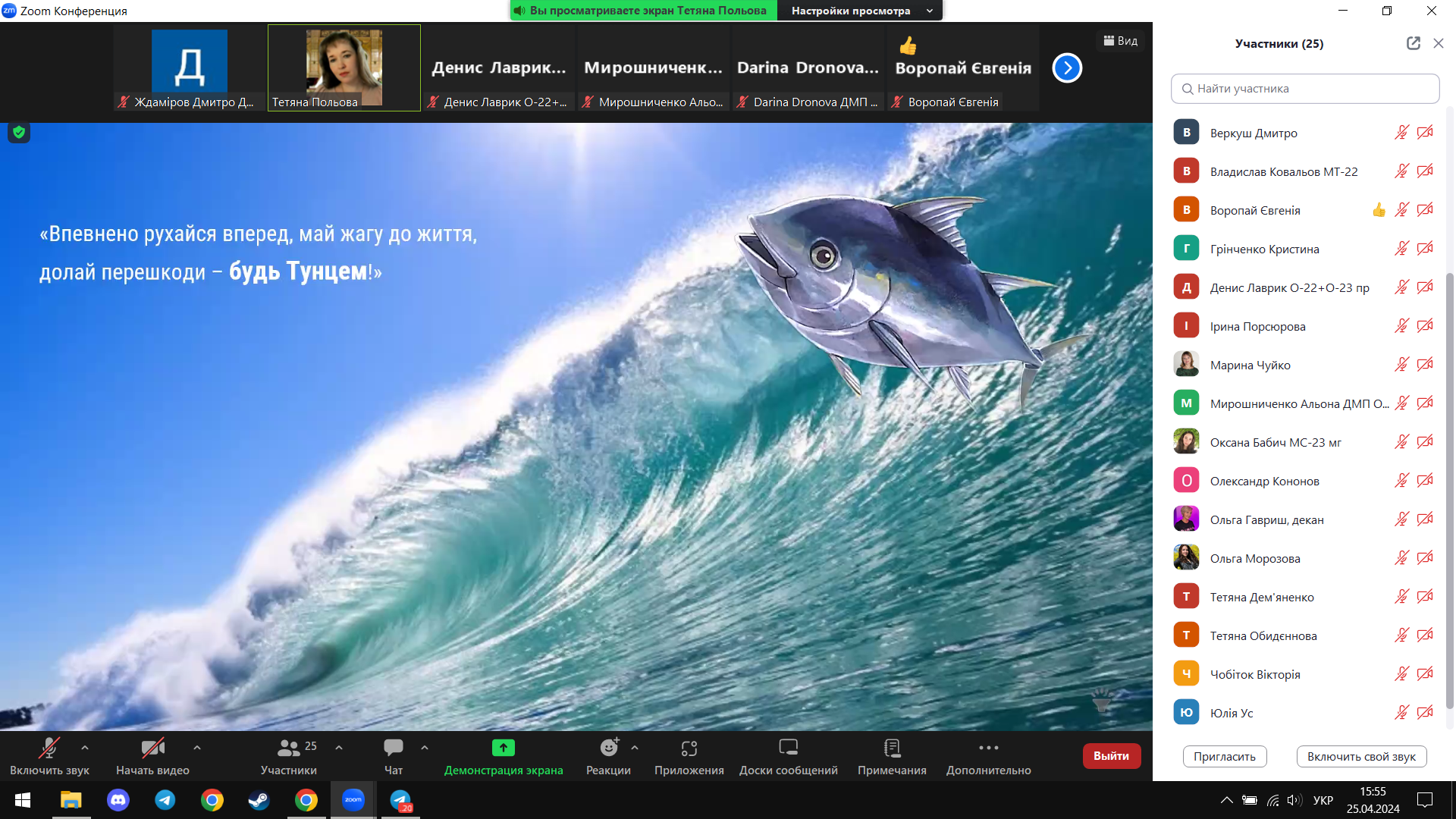 На кафедрі маркетингу та торговельного підприємництва УІПА відбувся виховний захід «Всесвітній день тунця: рух – запорука життя!» (організатор: доцент Польова Тетяна Володимирівна). Студенти та викладачі взяли участь у квізі про життя тунців, ознайомилися із заходами про дбайливе ставлення до тунцевих популяцій планети та збереження екосистеми, дивовижними особливостями цієї риби та споживчими властивостями її м’яса. Дякуємо усім за активність на нашій кафедральній виховній годині!