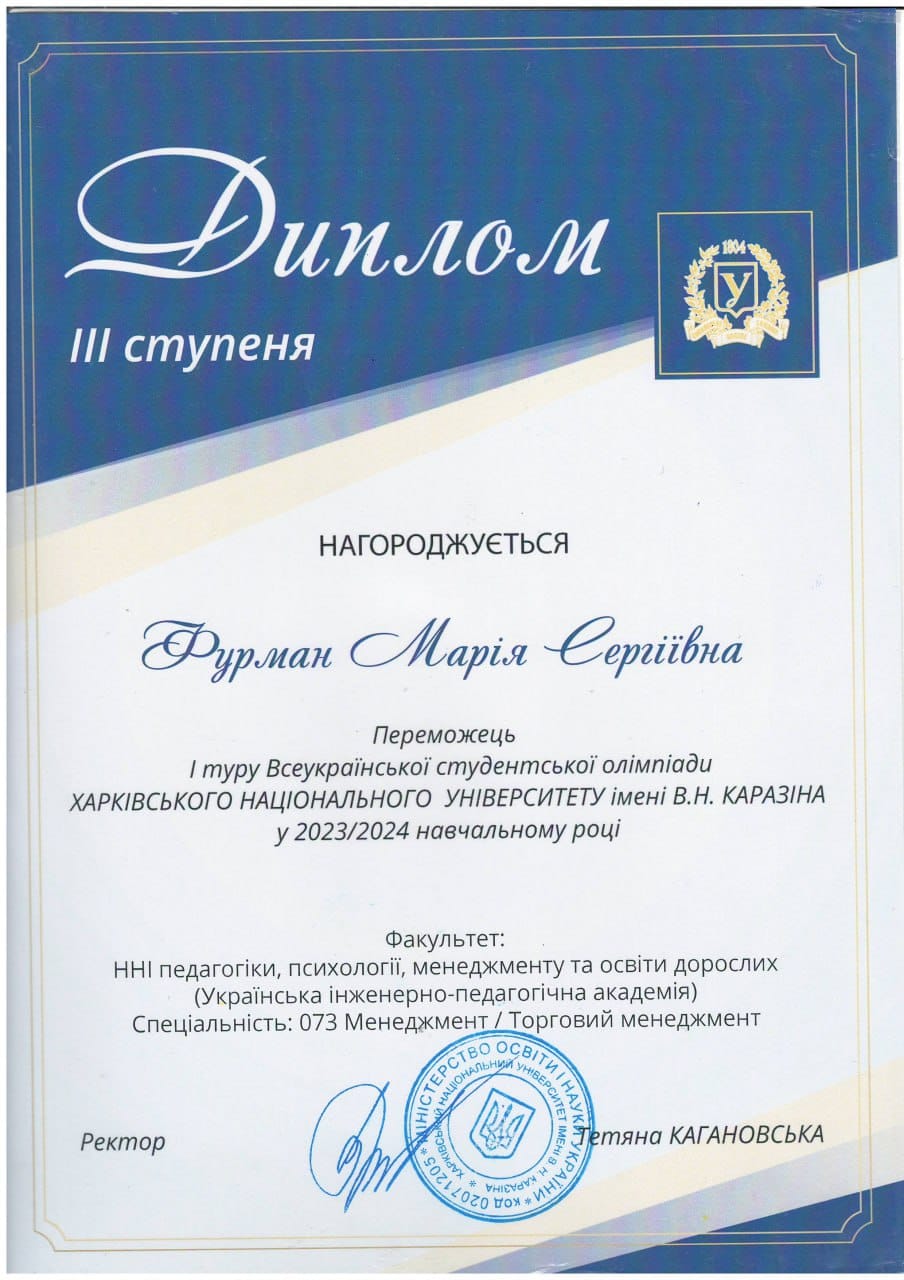 15 травня 2024 р. кафедра маркетингу та торговельного підприємництва УІПА в рамках LVII Всеукраїнської науково-практичної конференції науково-педагогічних працівників, науковців та аспірантів «ОСВІТА ТА НАУКА ДЛЯ ВІДНОВЛЕННЯ КРАЇНИ» провела засідання секції «Маркетинг та торговельне підприємництво». Головуюча Чобіток В.І., д.е.н., проф., зав. кафедрою.