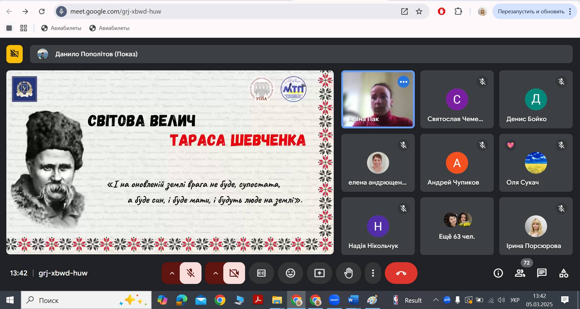 Щорічно на початку березня Україна відзначає Шевченківські дні − дати народження і смерті поета, що став головним українським пророком і народним символом. Його називають провісником нового життя, народним пророком, титаном духу, який уболівав за долю рідного народу, тому й залишив нащадкам духовний заповіт, що передається із покоління в покоління, від роду до роду. Духовну велич і красу українського слова він підніс на найвищу височінь. Давайте сприймати його як Живу Людину! Читати, любити та вірити в Майбутню Вільну Україну!