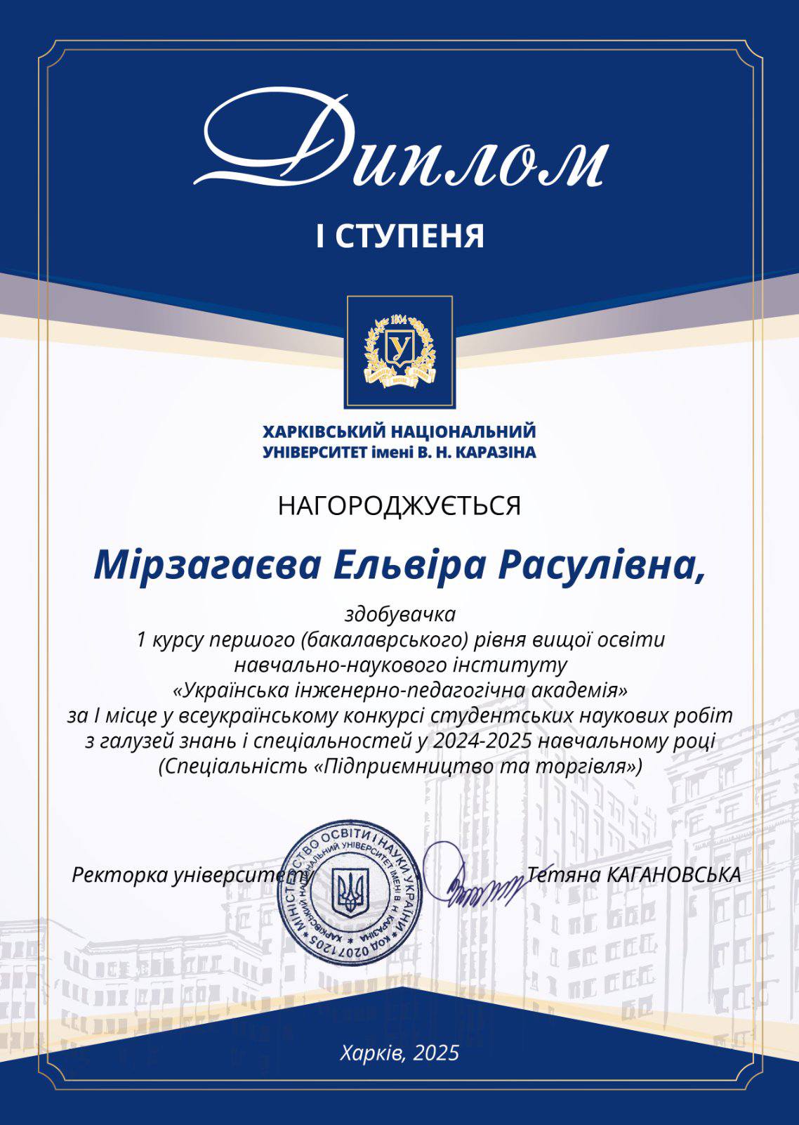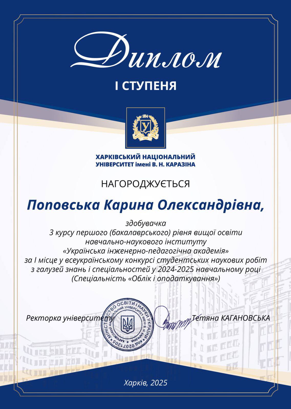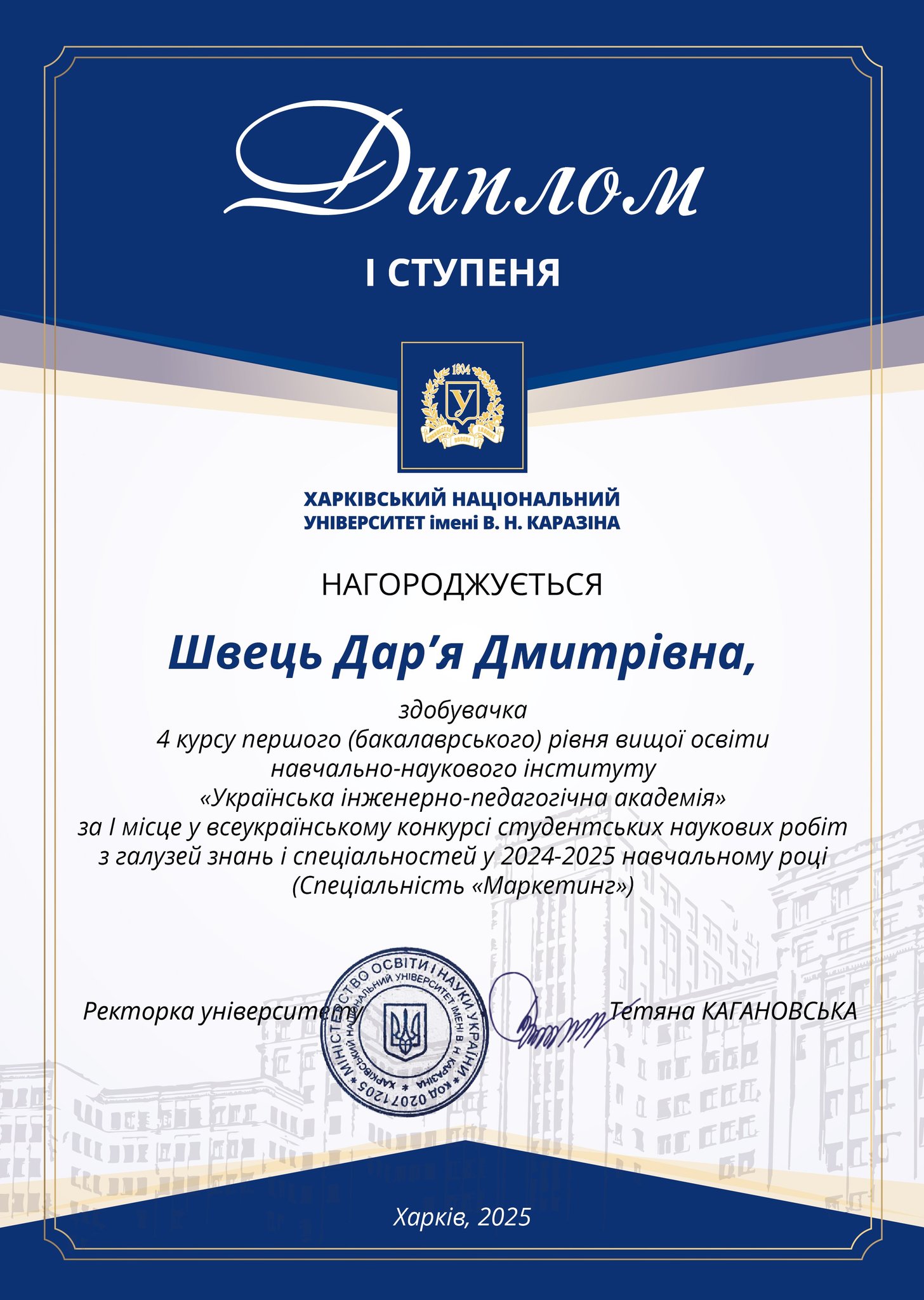 На базі Харківського національного університету імені В. Н. Каразіна з 05 лютого по 31 березня 2025 р. проведено другий тур Всеукраїнського конкурсу студентських наукових робіт з галузей знань і спеціальностей. Здобувачі бакалаврського та магістерського рівнів кафедри маркетингу та торговельного підприємництва ННІ УІПА під керівництвом провідних викладачів прийняли активну участь у конкурсі. Студенти представили змістовні наукові роботи зі спеціальностей 071 «Облік і оподаткування», 073 «Менеджмент», 075 «Маркетинг», 076 «Підприємництво та торгівля».Пишаємося нашими здобувачами, дякуємо науковим керівникам. Бажаємо успіхів і подальших наукових досягнень