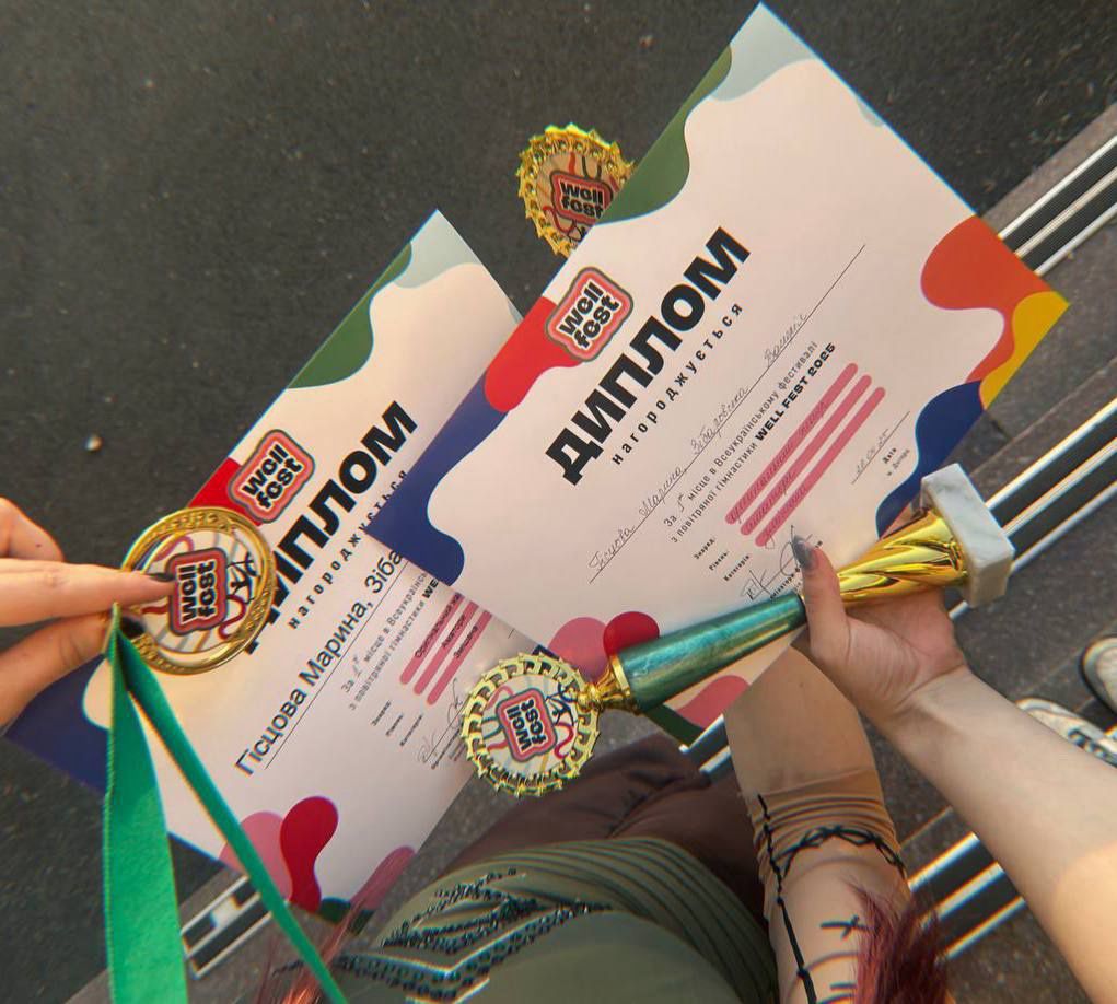 Вітаємо студентку кафедри МТП ННІ УІПА ХНУ ім. В. Каразіна Гісцову Марину з перемогою у Всеукраїнському фестивалі з повітряної гімнастики WELL FEST, що проходив 25-27 квітня 2025 року в місті Дніпро .