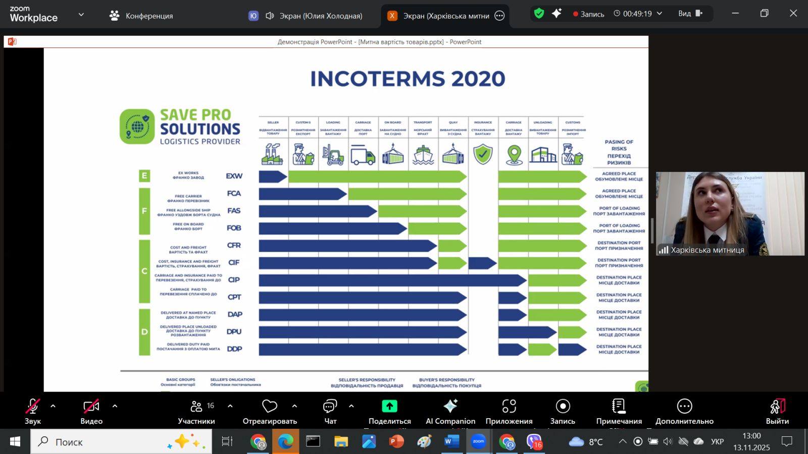 Здобувачі та викладачі кафедри МТП ННІ УІПА ХНУ ім.В.Каразіна долучилися до гостьової лекції на тему: “Митна вартість”, що проведена представниками Харківська митниця на запрошення колег із Харківського національного економічного університету імені С. Кузнеця, а саме Холодної Юлії, стала цінною можливістю для студентів поглибити свої знання про сучасні підходи до визначення та контролю митної вартості. Фахівці поділилися практичним досвідом, розглянули типові проблемні ситуації та механізми їх вирішення, а також акцентували увагу на важливості коректного декларування та взаємодії суб’єктів зовнішньоекономічної діяльності з митними органами. Лекція сприяла формуванню у студентів більш цілісного розуміння митних процедур і підкреслила значення співпраці між освітніми установами та державною службою. Дякуємо за співпрацю!