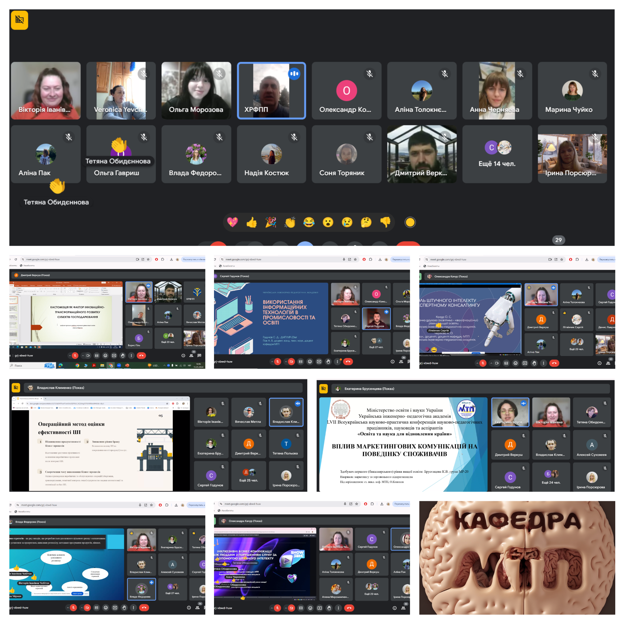 15 травня 2024 р. кафедра маркетингу та торговельного підприємництва УІПА в рамках LVII Всеукраїнської науково-практичної конференції науково-педагогічних працівників, науковців та аспірантів «ОСВІТА ТА НАУКА ДЛЯ ВІДНОВЛЕННЯ КРАЇНИ» провела засідання секції «Маркетинг та торговельне підприємництво». Головуюча Чобіток В.І., д.е.н., проф., зав. кафедрою. У лютому 2024 року за підтримки ректора Української інженерно-педагогічної академії, доктора педагогічних наук,
